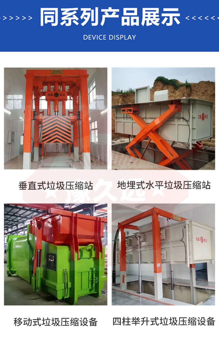 大型垃圾壓縮站設備、垂直式垃圾壓縮設備、地埋式垃圾壓縮站設備